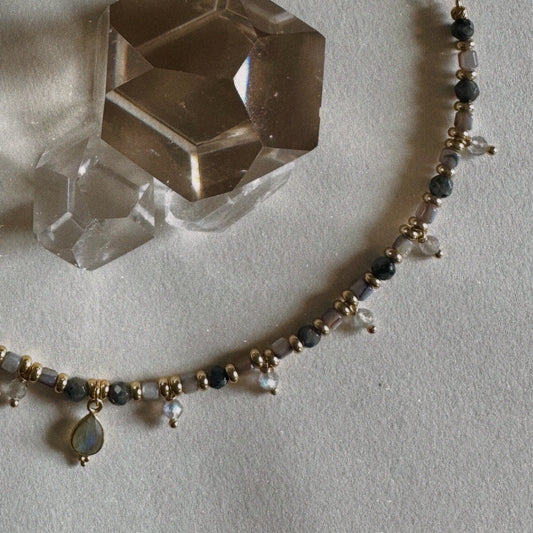 Collier Cristal de roche et Hématite – Clarté et Ancrage