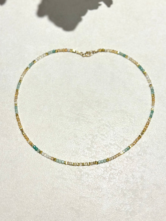 Collier Chrysocolle, Grenat, Cristal de roche, Agathe