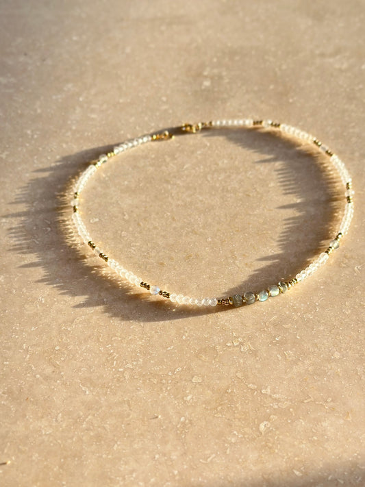 Collier perle d’eau douce & Labradorite – Voile de lumière et protection subtile