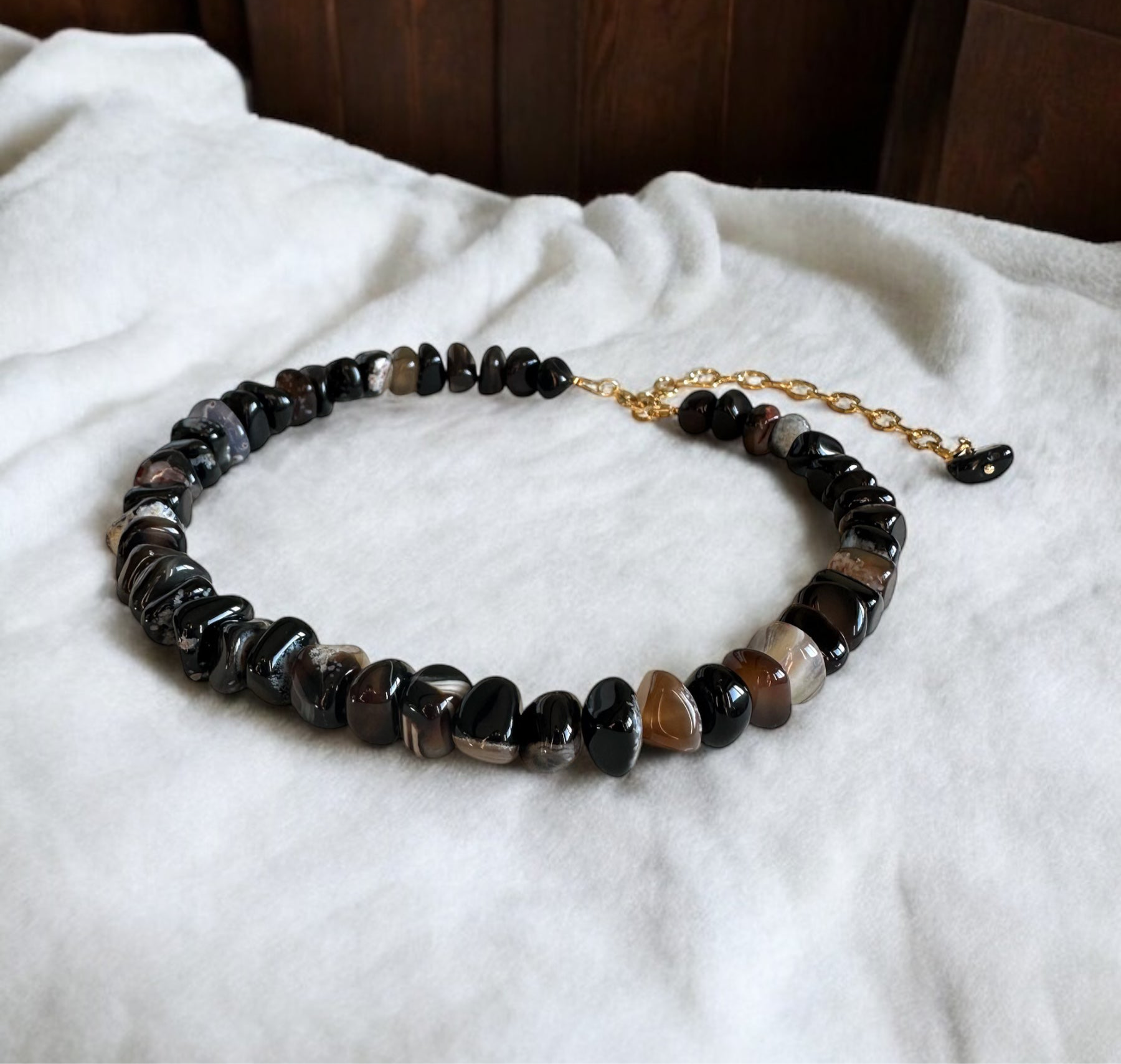 L’Agate du Botswana (Yin, chakra sacré) apporte apaisement et force intérieure.