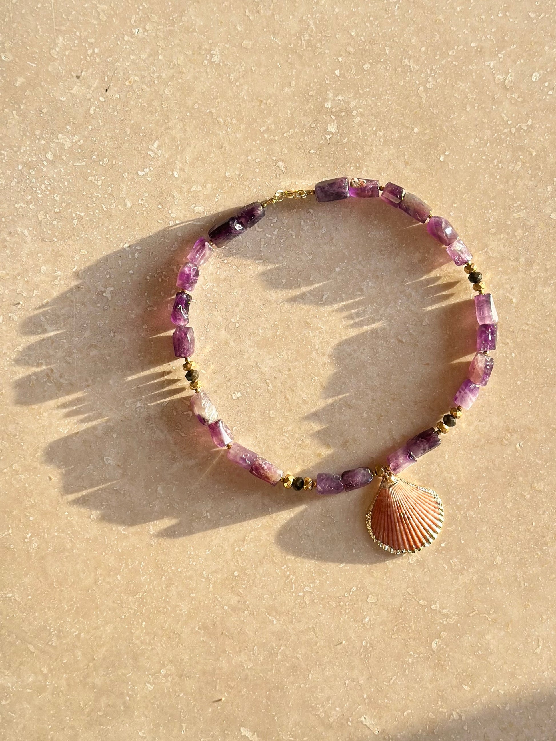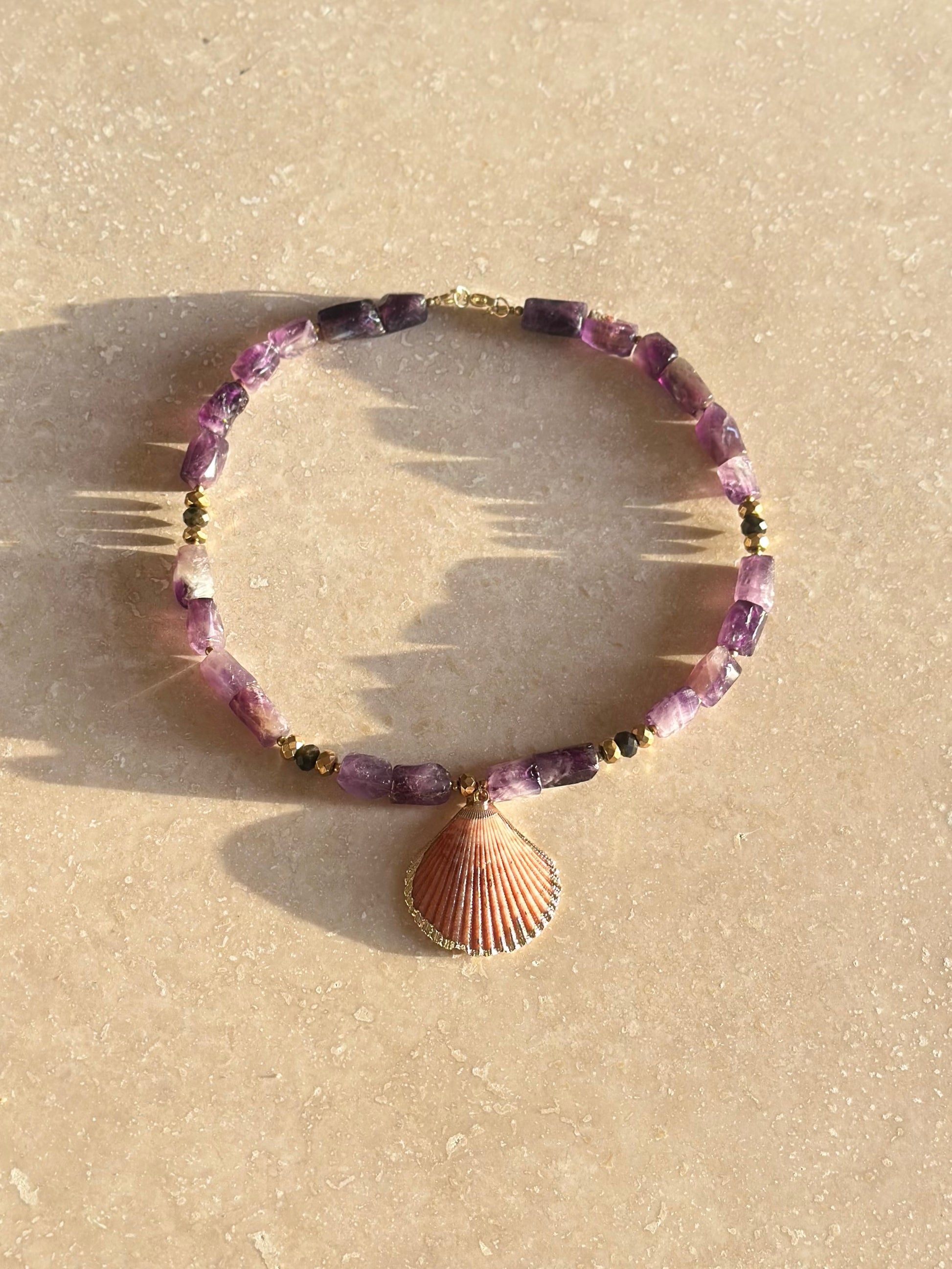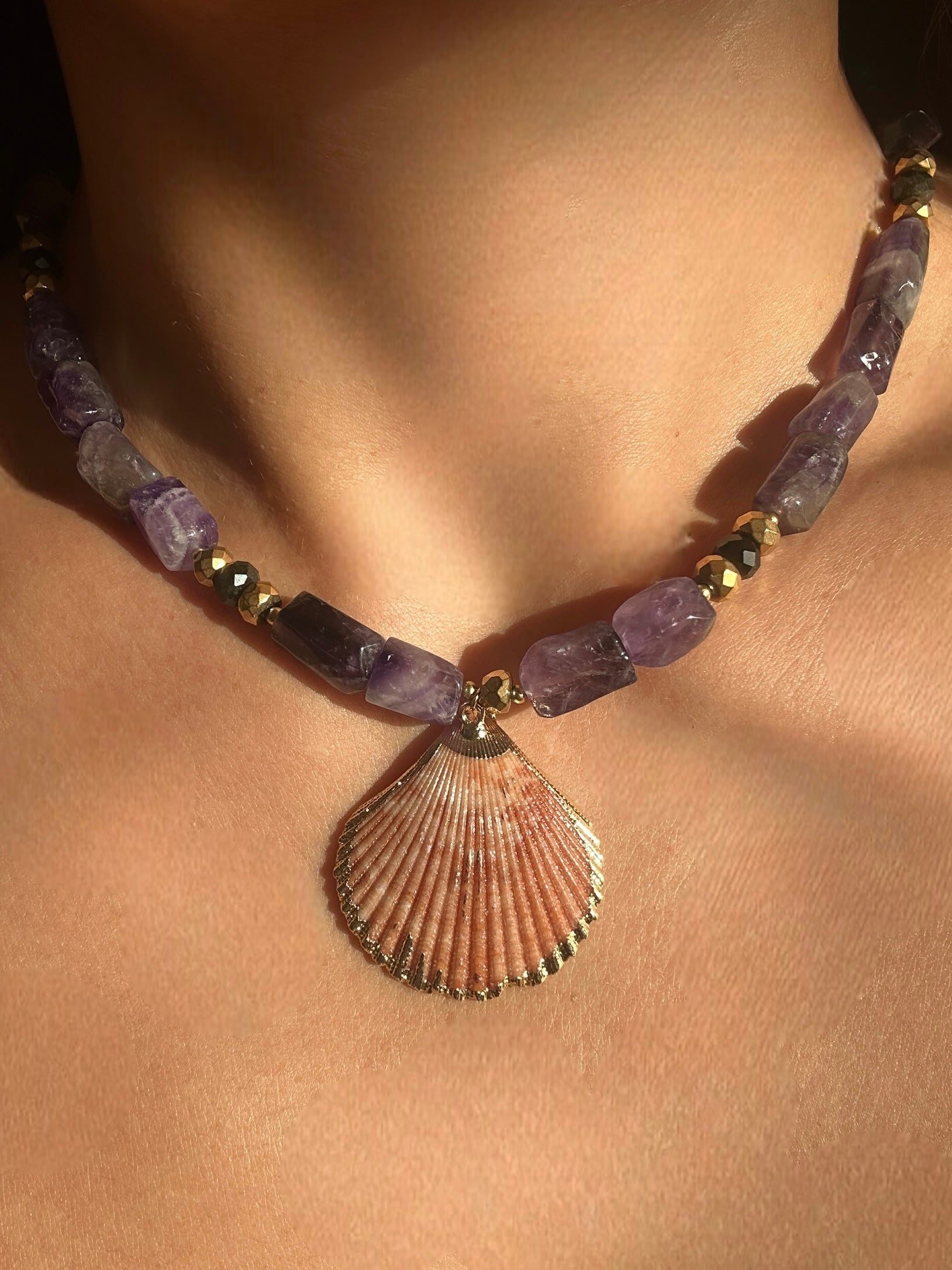 Alliance du ciel et de la terre, l’améthyste et l’obsidienne unissent l’élévation spirituelle à la force d’ancrage. L’améthyste éclaire la conscience, ouvre le canal intuitif et purifie le champ énergétique, tandis que l’obsidienne offre une protection profonde et un enracinement solide.