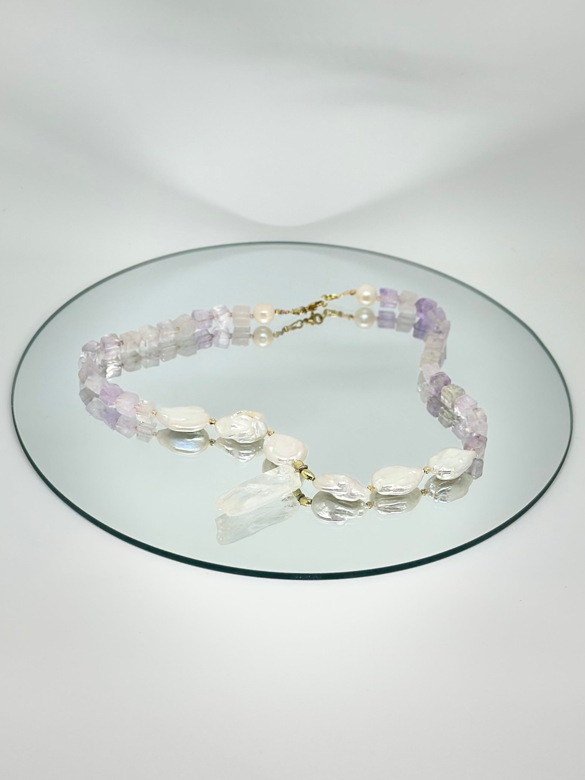 Collier Améthyste, Perles d’eau douce & Cristal de Roche