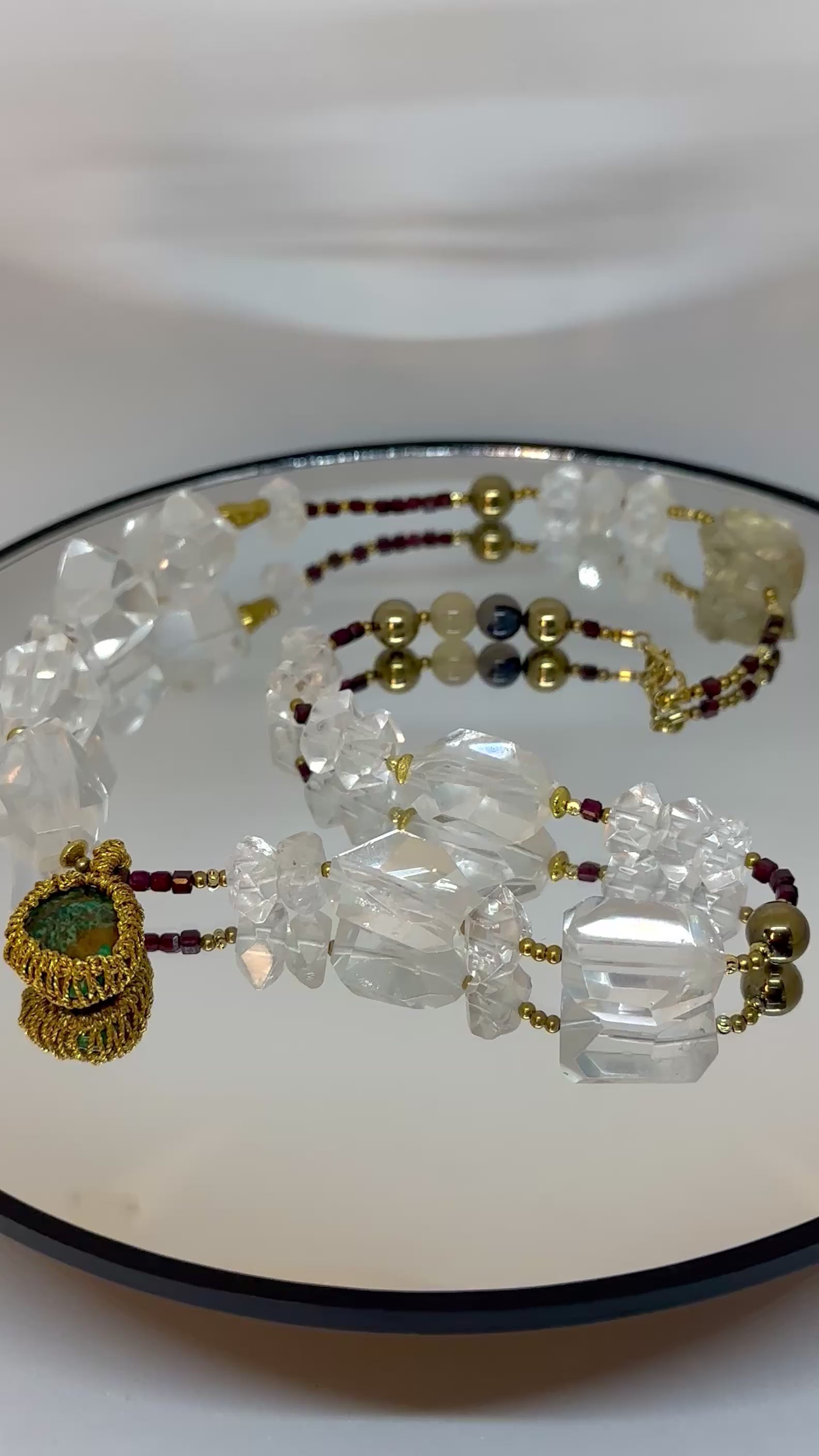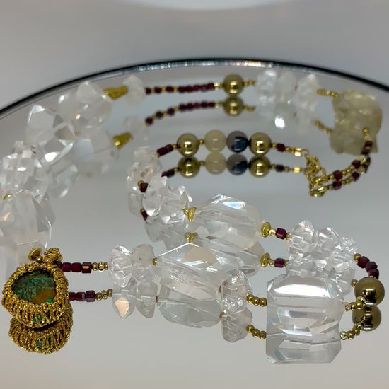 Collier Chrysocolle, Grenat, Cristal de roche, Agathe