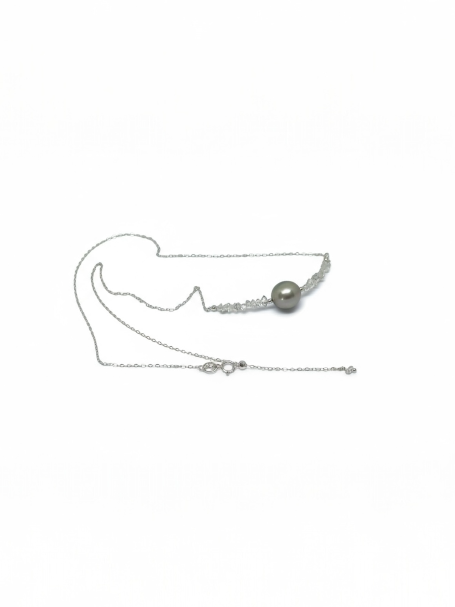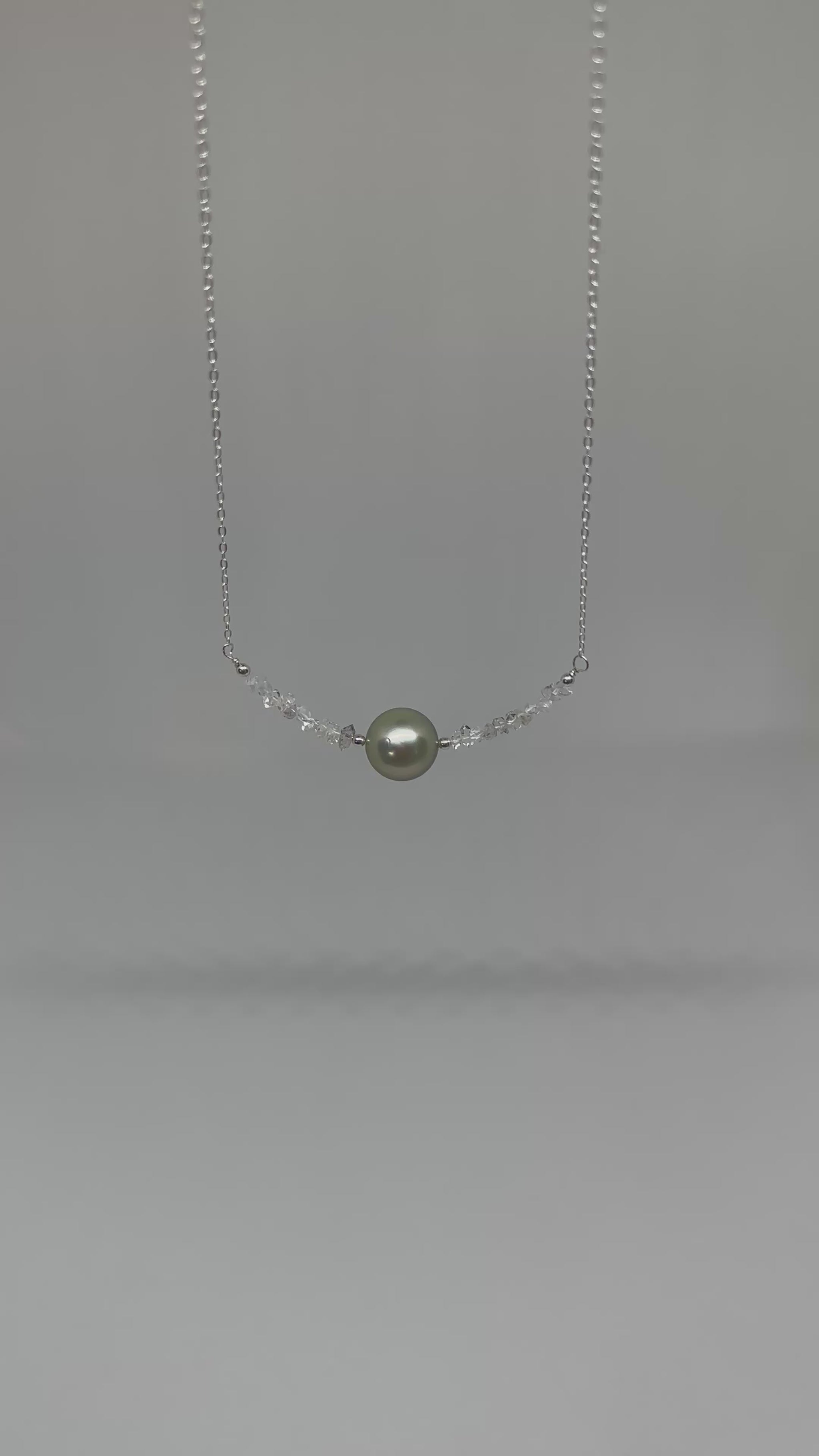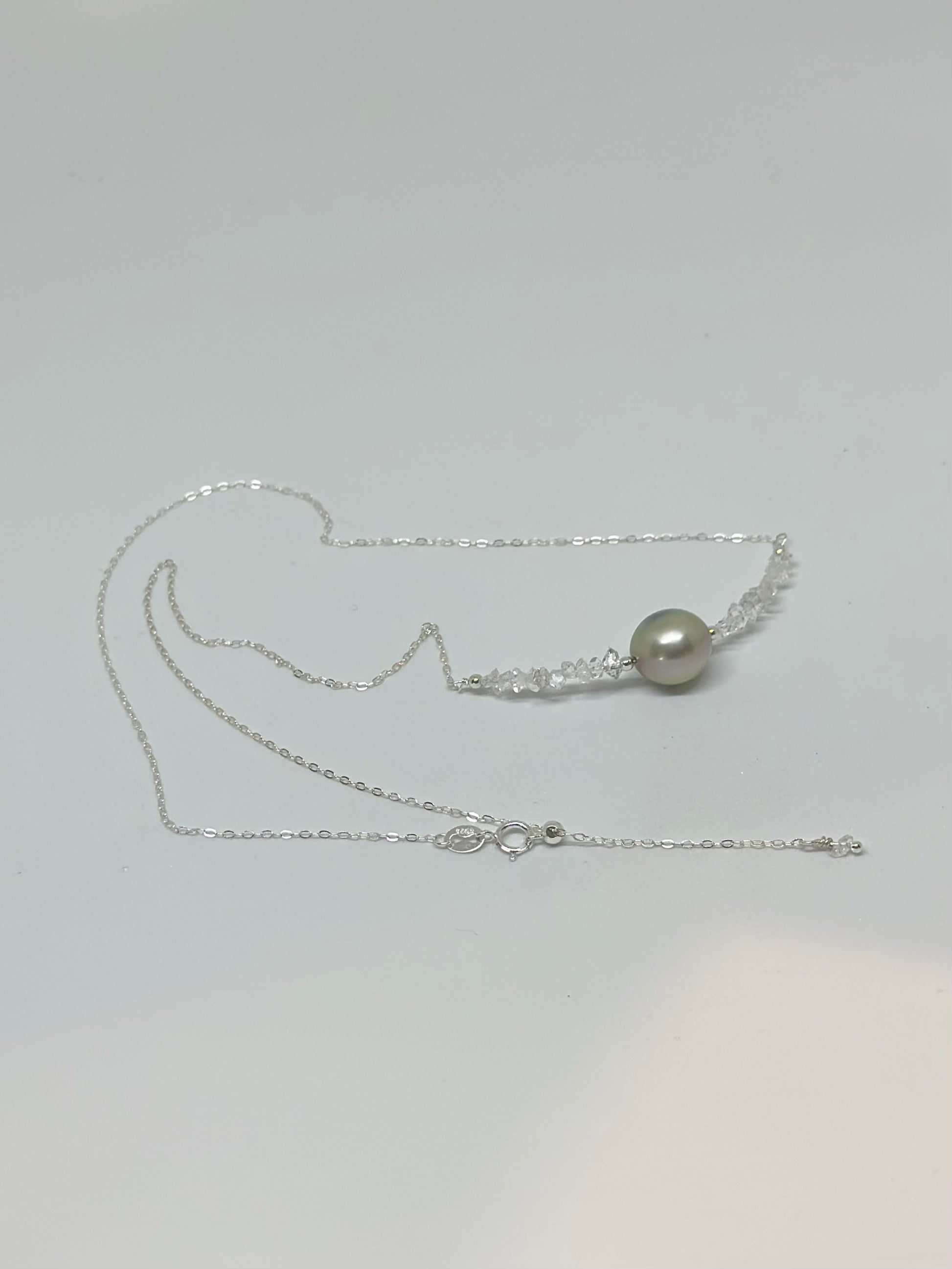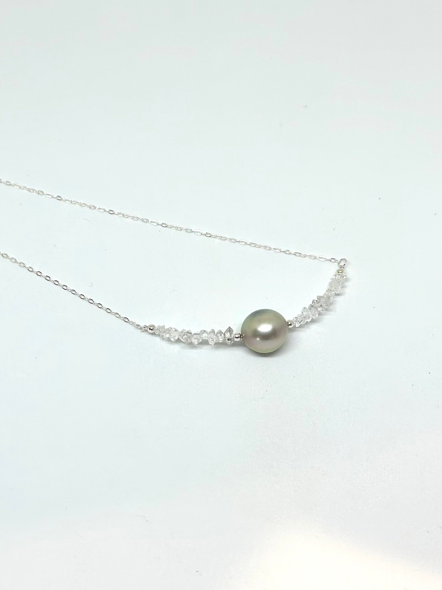 Collier diamant d’Herkimer & perle de Tahiti – Clarté cristalline et profondeur