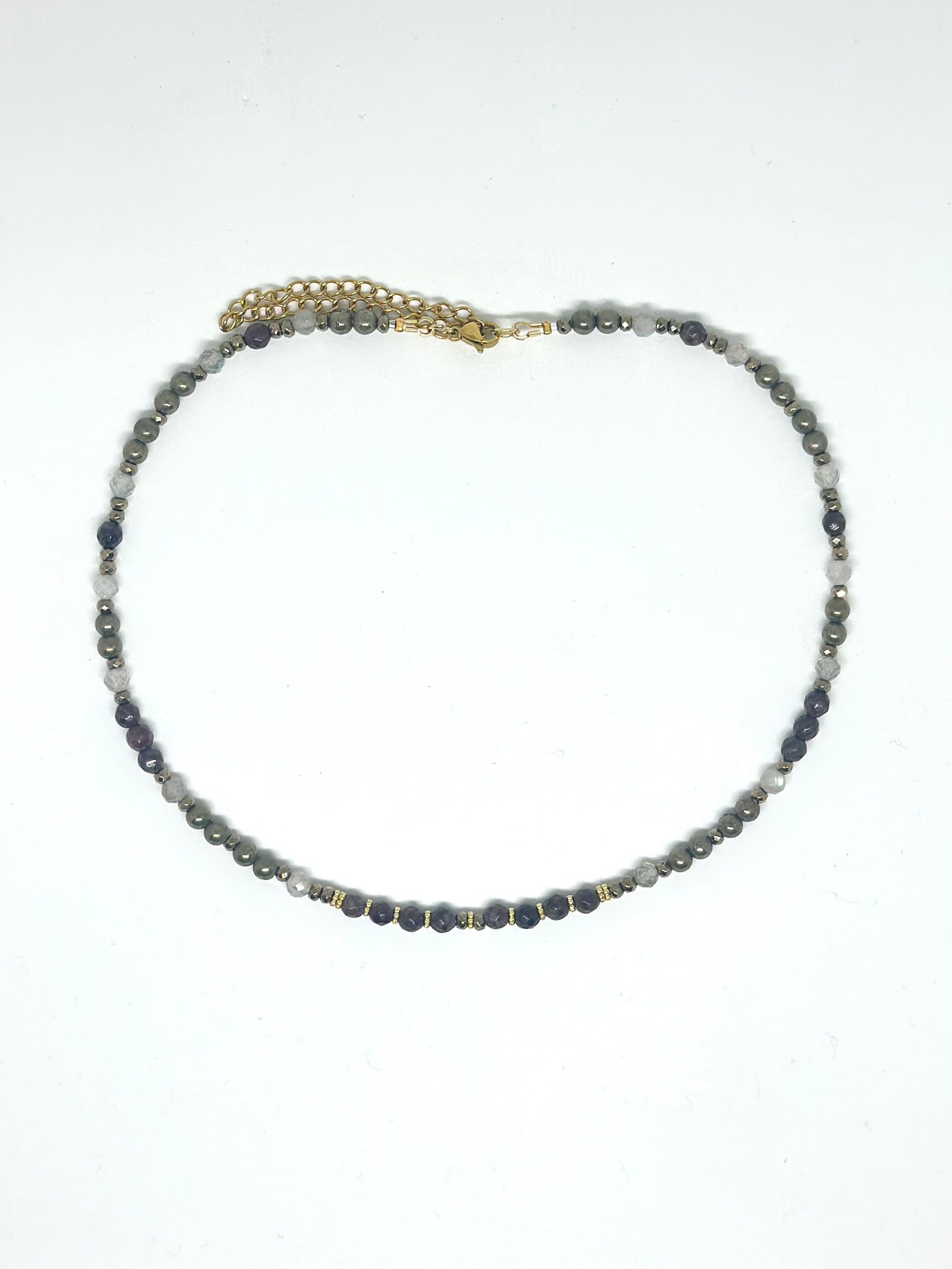 Collier Grenat, Labradorite, Pyrite — Le feu protégé qui guide l’élan