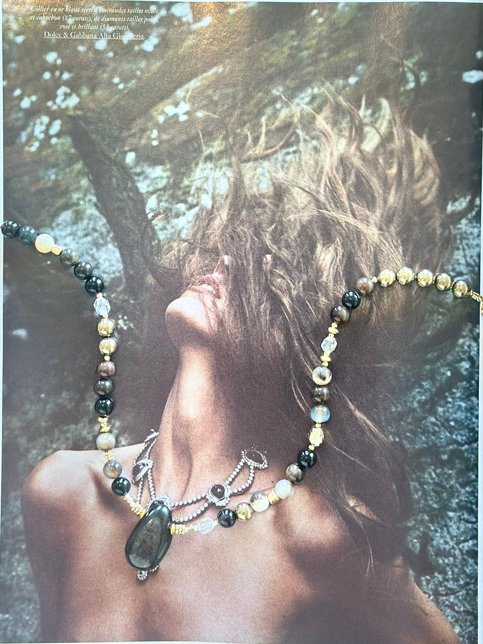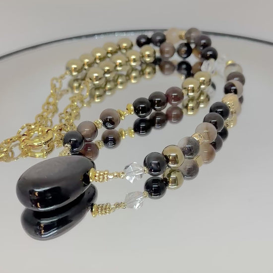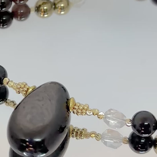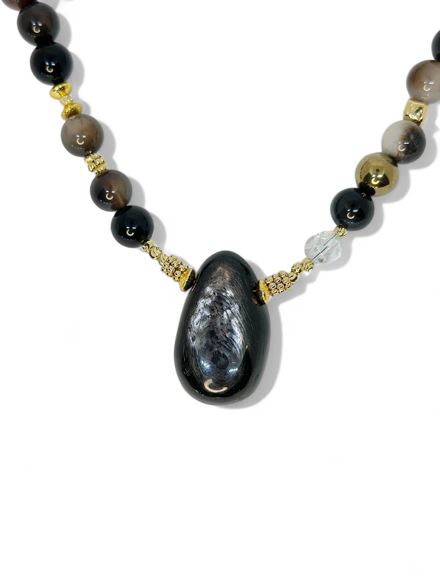Collier Hyperstène, Agathe, Cristal de roche, Hématite