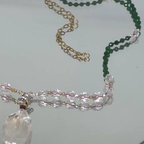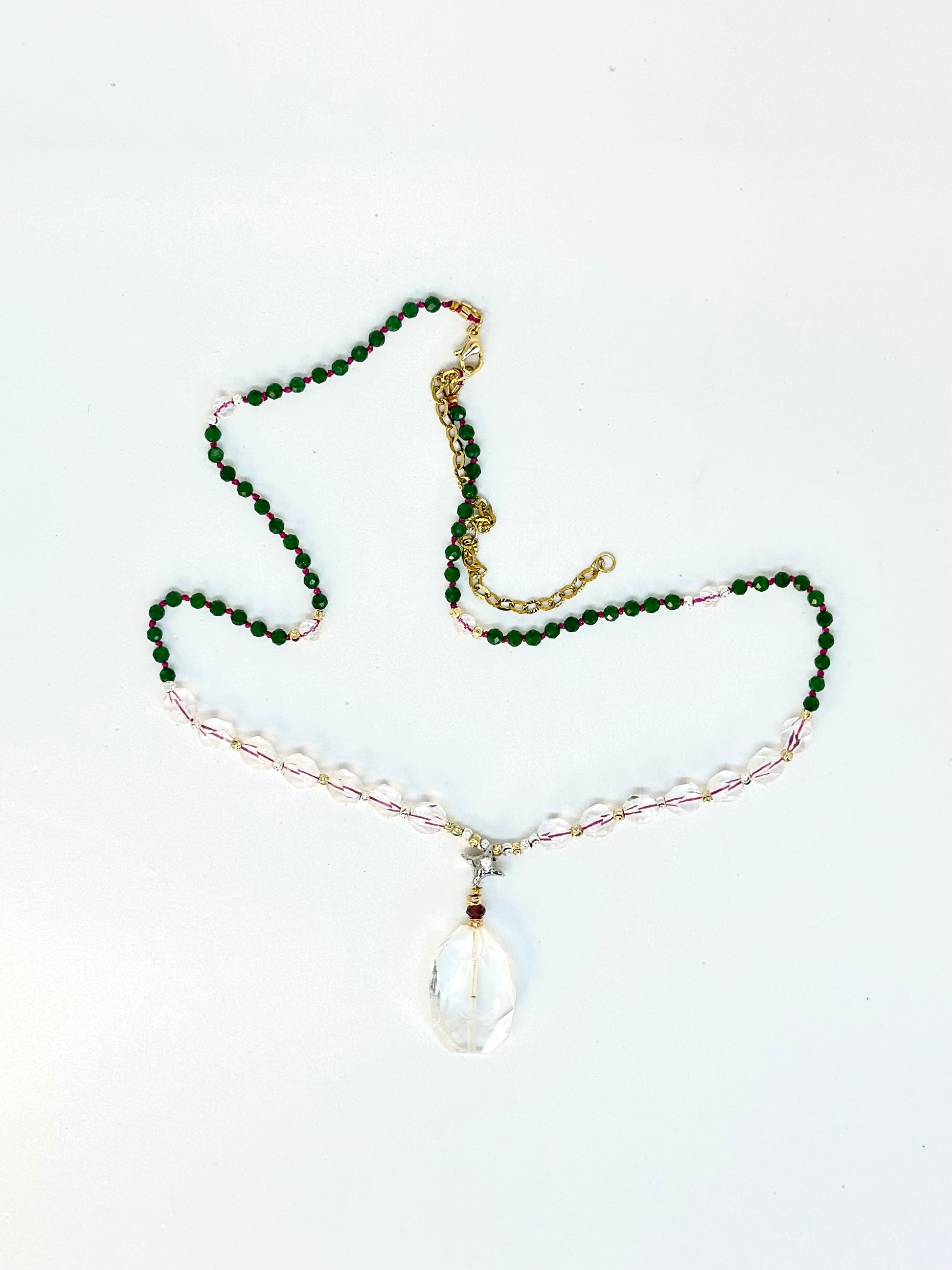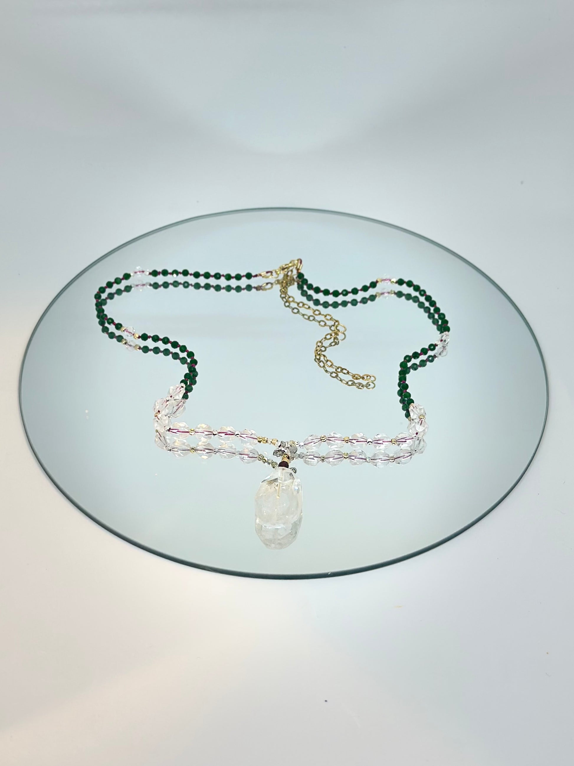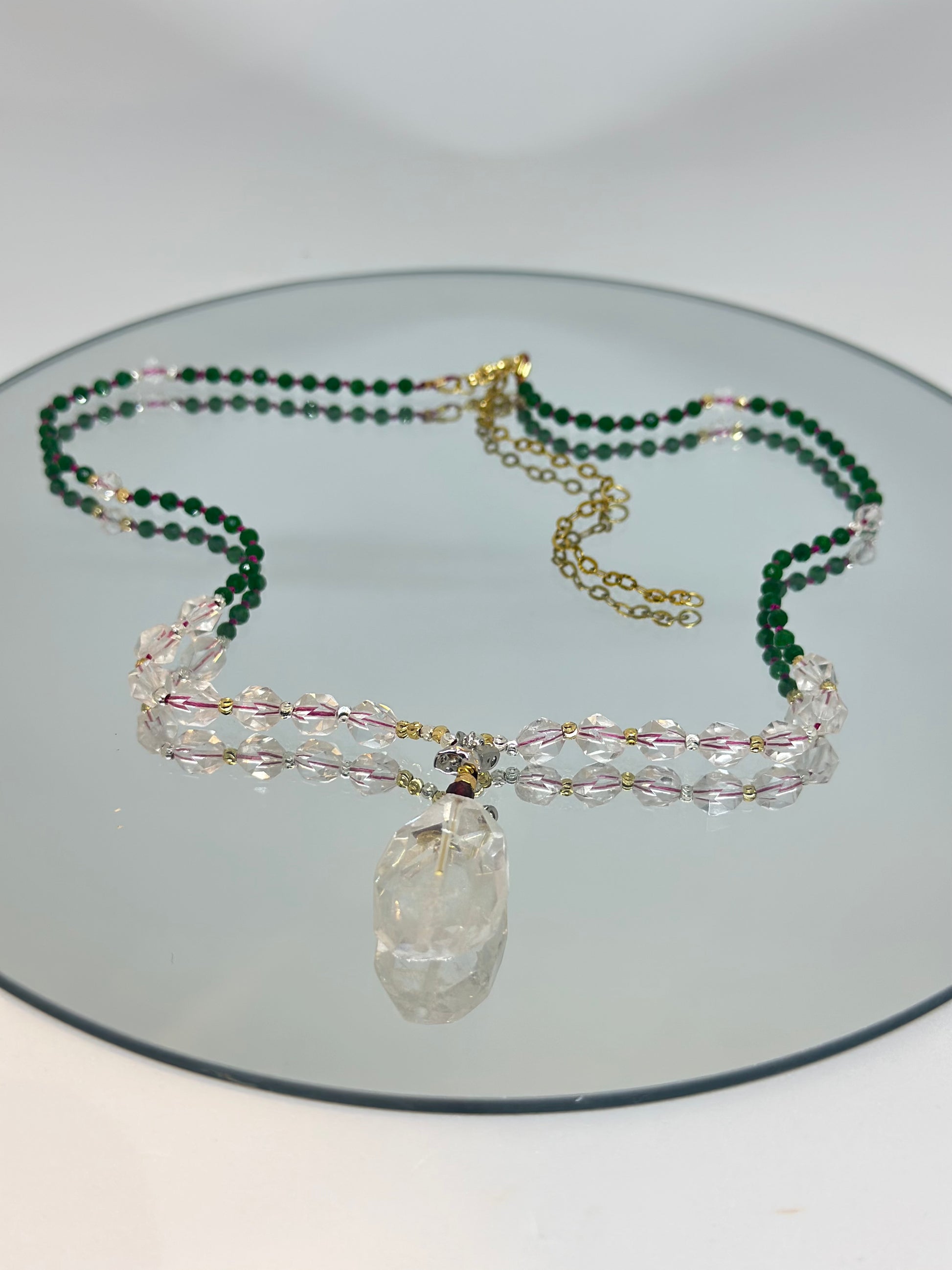 Collier Jade vert, Cristal de roche, Grenat