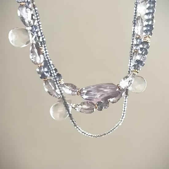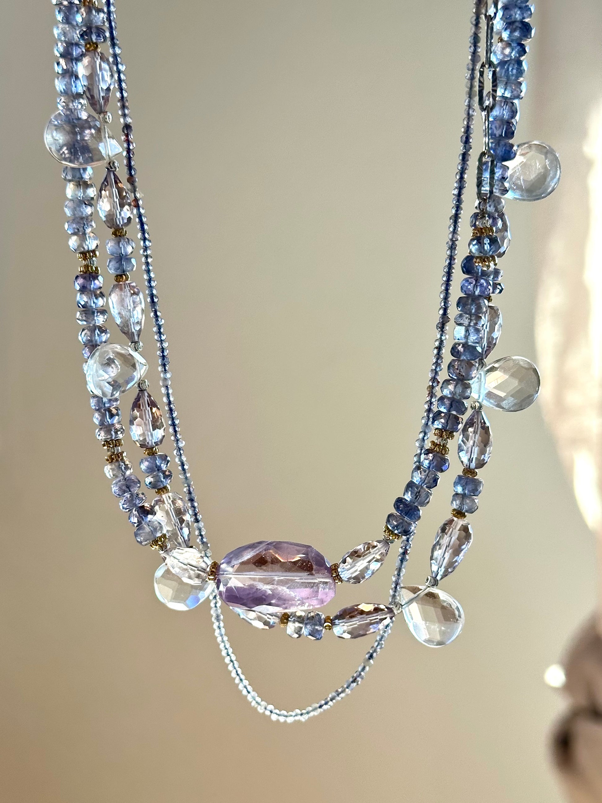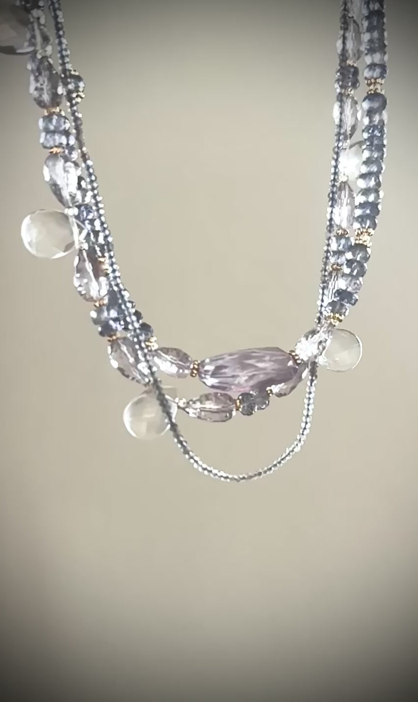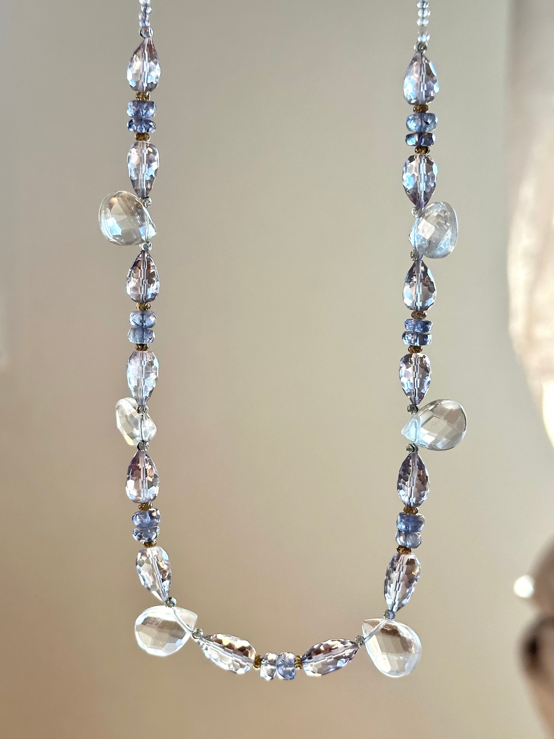 - Collier Cristal de Roche, Iolite & Améthyste rose