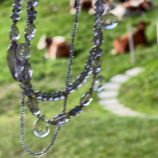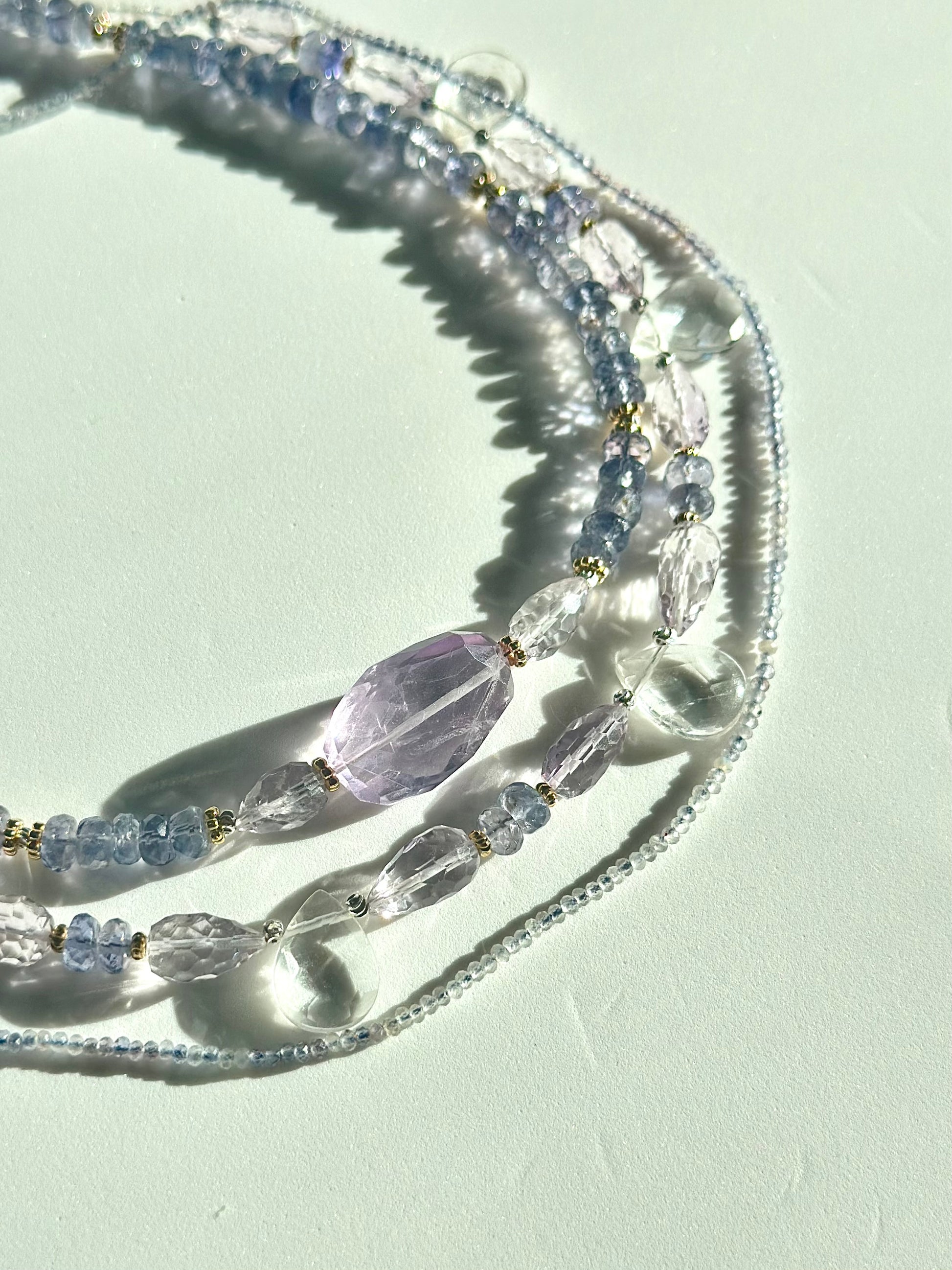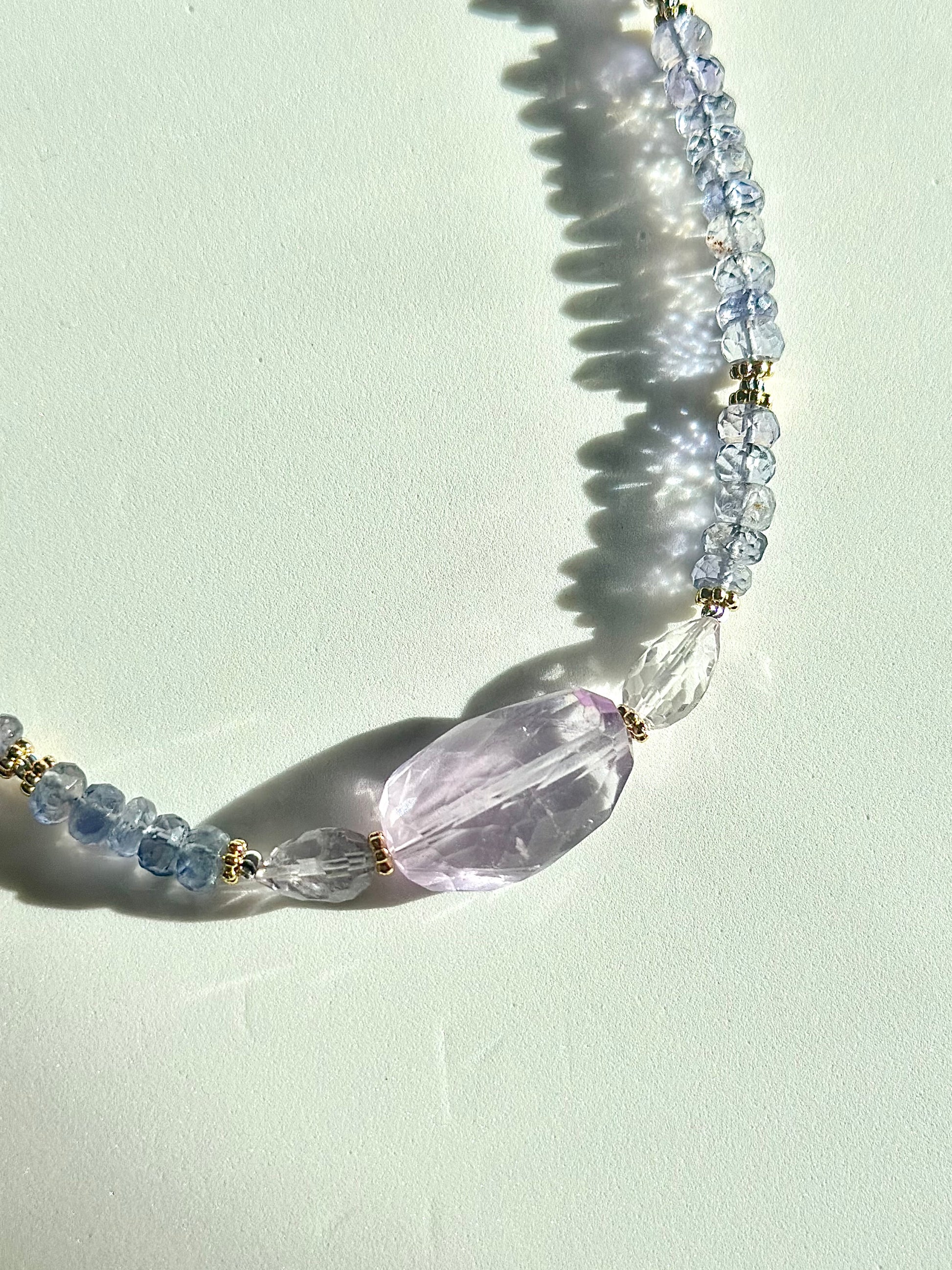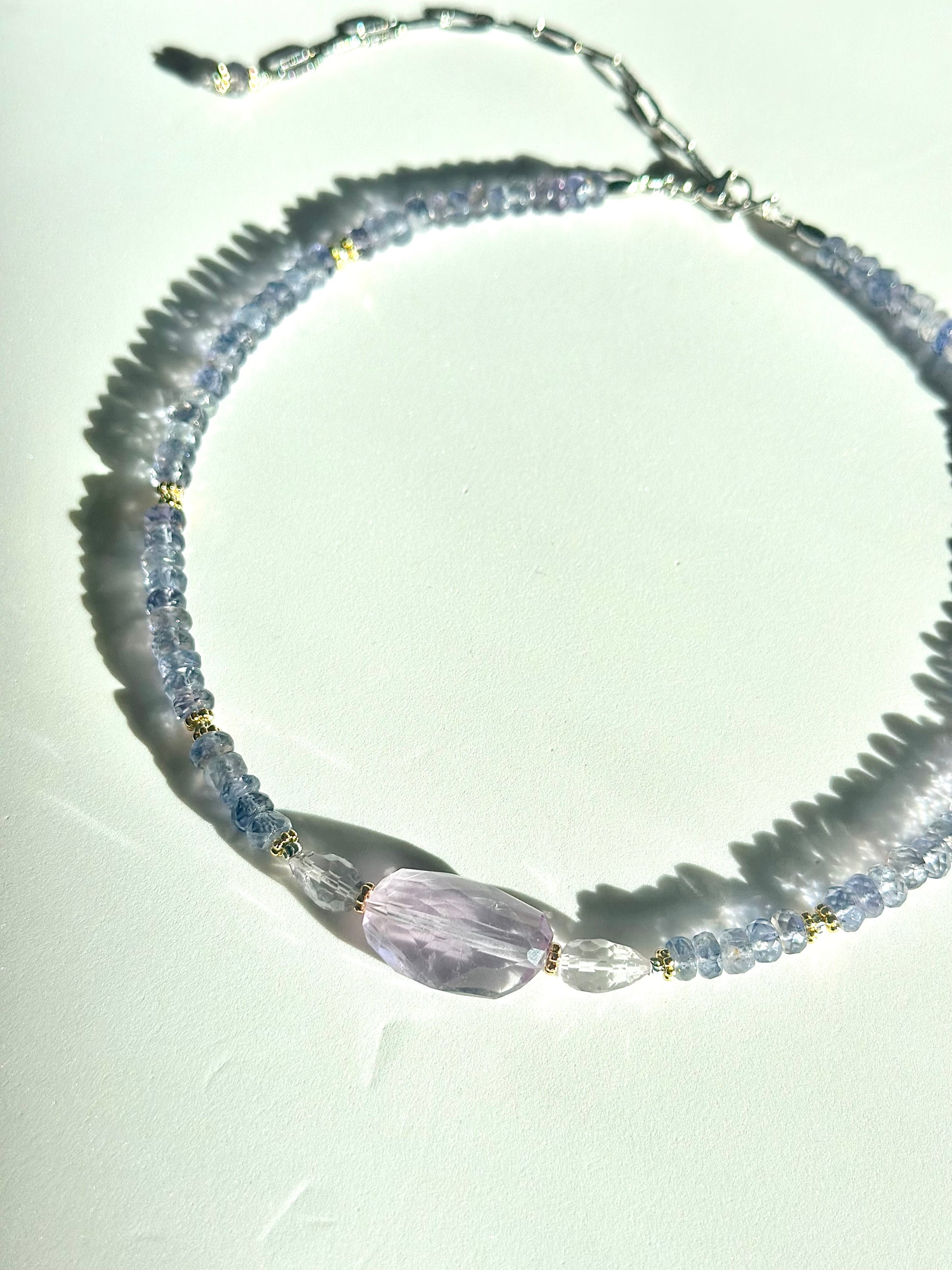 - Collier Cristal de Roche, Iolite & Améthyste rose