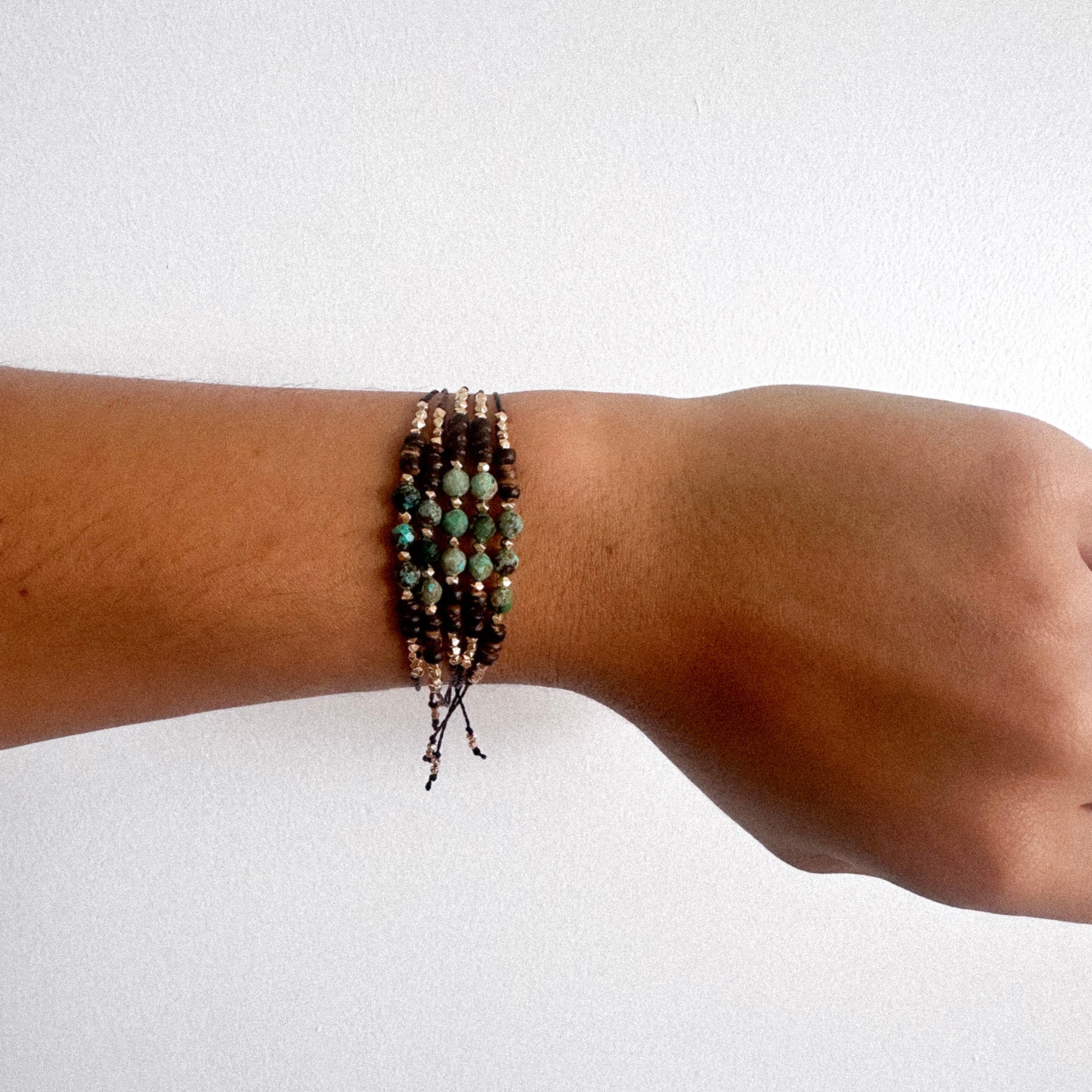 La turquoise est une pierre de communication et d'équilibre, elle favorise l'harmonie et la paix intérieure.