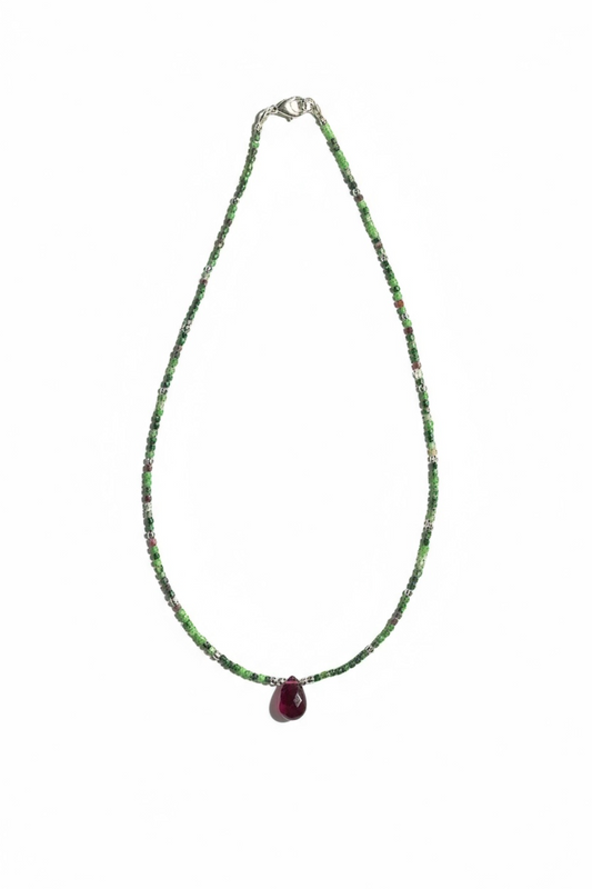 #160 Collier Quartz fumé, Aigue-Marine & Améthyste verte